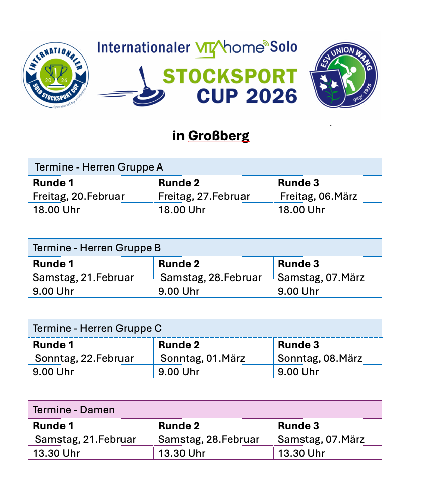 Wir freuen uns auf packende Spiele und zahlreiche Zuschauerinnen und Zuschauer in der Stockarena Großberg.